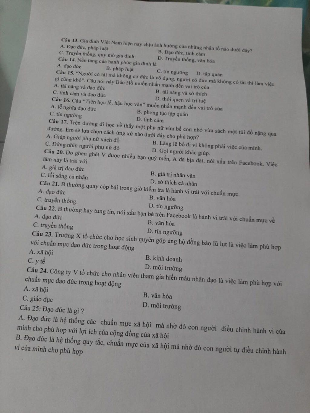 Câu 13. Gia đình Việt Nam hiện nay chịu ảnh hưởng của những nhân tố nào dưới đây?