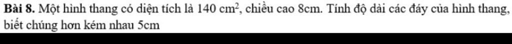 Độ dài đáy lớn là `:15+5=20cm`