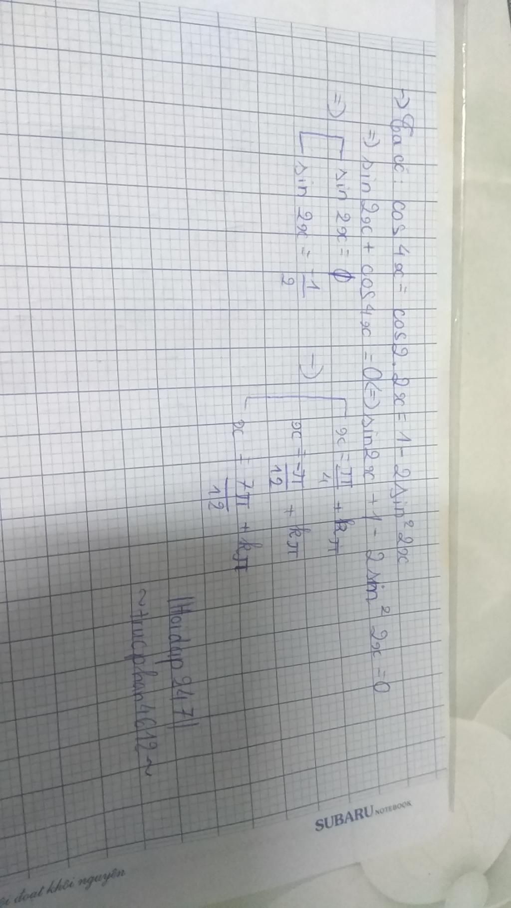 giải phương trình sau: sin 2x + cos 4x = 0