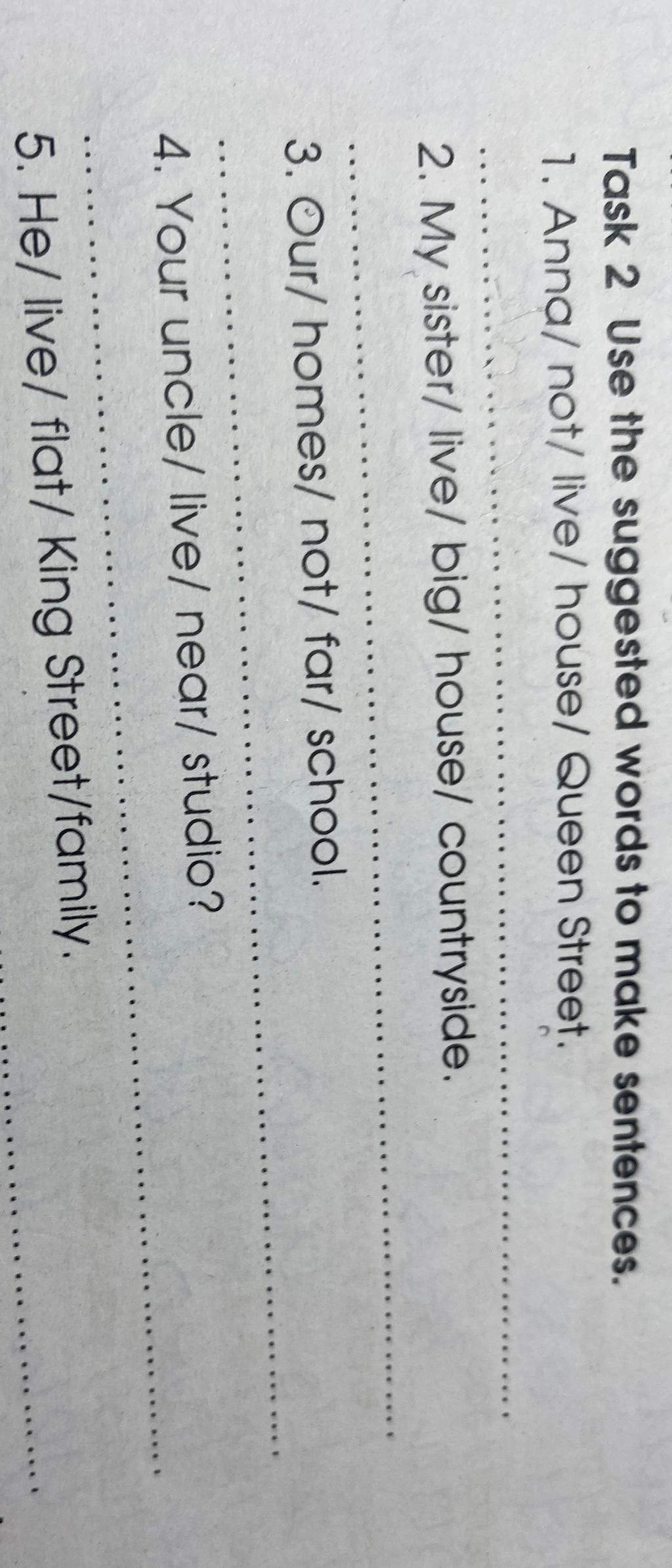 `-` live + in/on/at + place + with s.o : sống ở đâu cùng ai