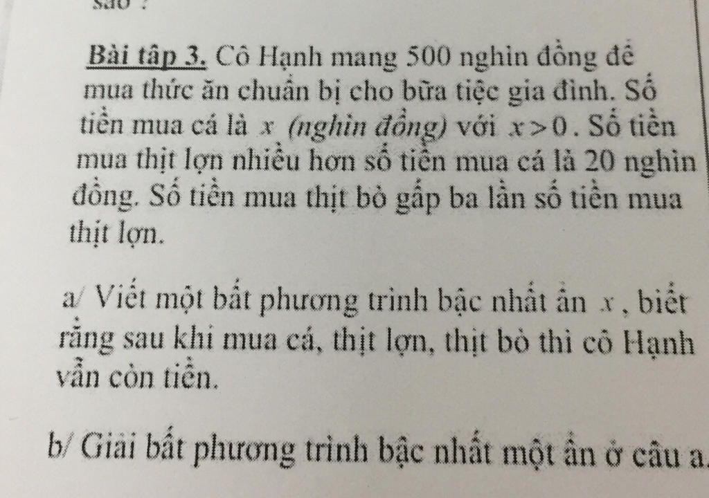 Số tiền mua thịt bò là $3(x+20)$ nghìn đồng