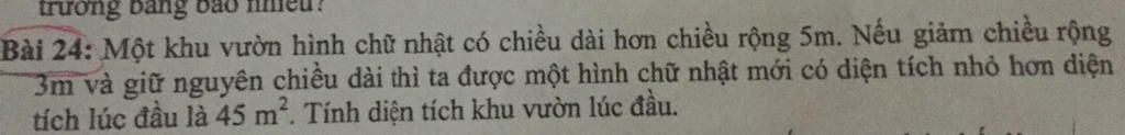 Ta có diện tích hình chữ nhật sau khi giảm chiều rộng, giữ chiều rộng nhỏ hơn diện tích ban đầu là : `45 (m^2) `