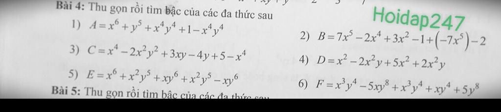 `6) F = x^3y^4 - 5xy^8 + x^3y^4 + xy^4 + 5y^8`