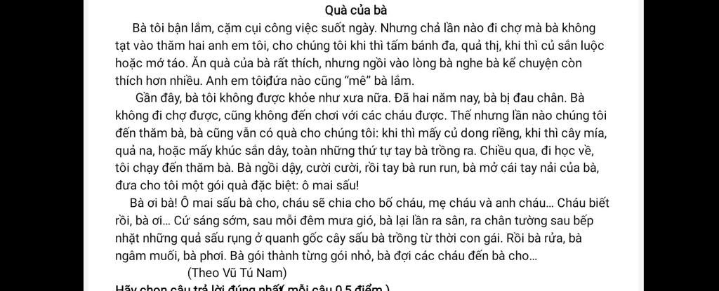 Câu 9: Qua câu chuyện em thấy tình cảm người bà dành cho cháu như thế nào?