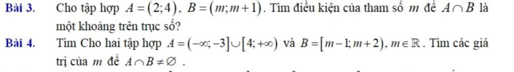 $\to [m-1, m+2)\cap (-\infty, -3]\ne\varnothing$ hoặc $[m-1, m+2)\cap [4, +\infty)\ne\varnothing$