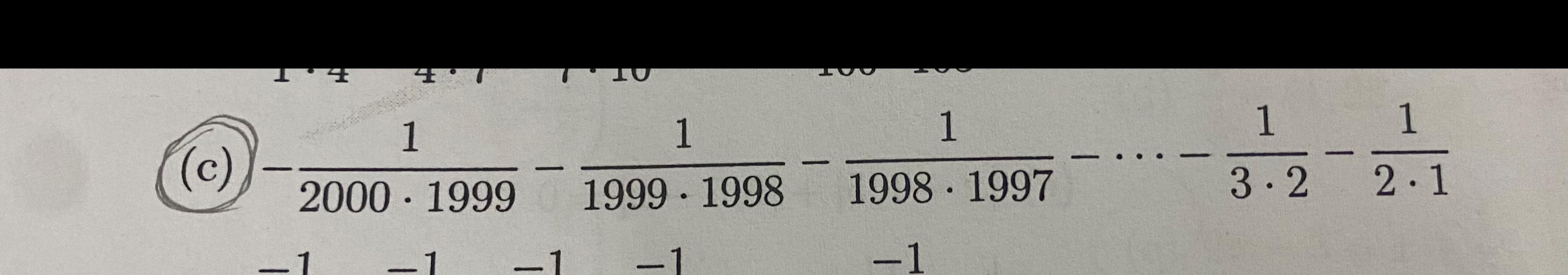 `= -(1/( 2000 . 1999) + 1/( 1999 . 1998) + 1/( 1998 . 1997) + .. + 1/( 3 . 2) + 1/( 2 . 1))`