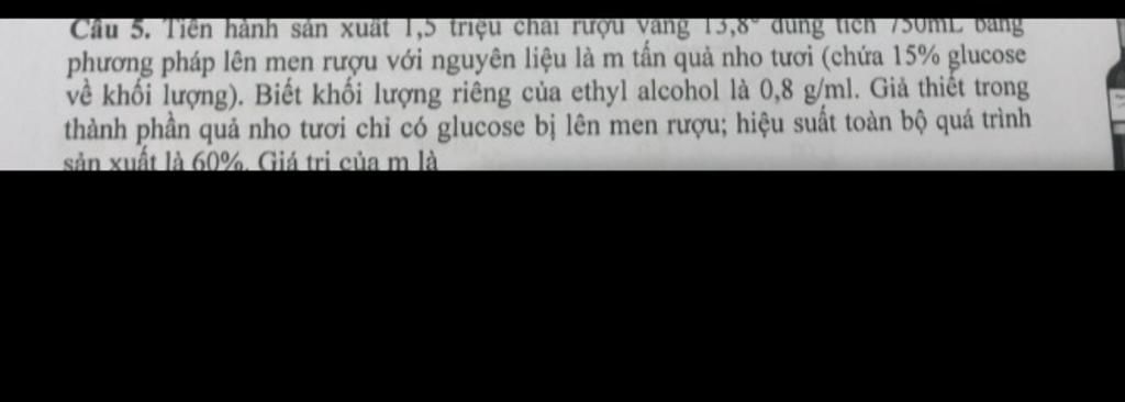 Câu 5. Tiến hành sản xuất 1,5 triệu chai rượu vang 15,3 dung trên 70m