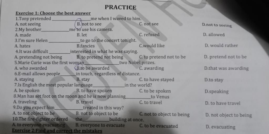 Exercise 1: Choose the best answer