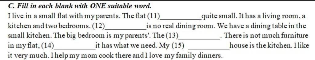 14)but ( nhà tôi ko có nhiều đồ * nội thất *, nhưng nó có những gì tôi cần.)