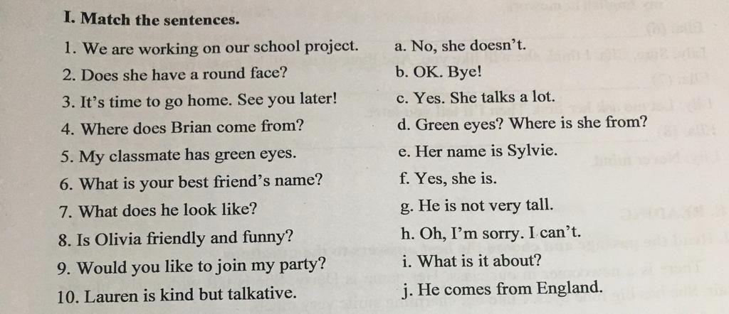 `-` My classmate has green eyes `->` Có liên quan tới câu trả lời.