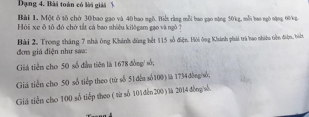 Ô tô đó chở tất cả số kg ngô và gạo là ` : `