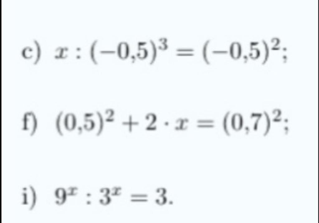 `c) x : ( -0,5 )^3 = ( -0,5 )^2`