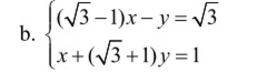 $\begin{cases} (\sqrt{3}-1).x-y=\sqrt{3}\\x+(\sqrt{3}+1).y=1\\ \end{cases}$