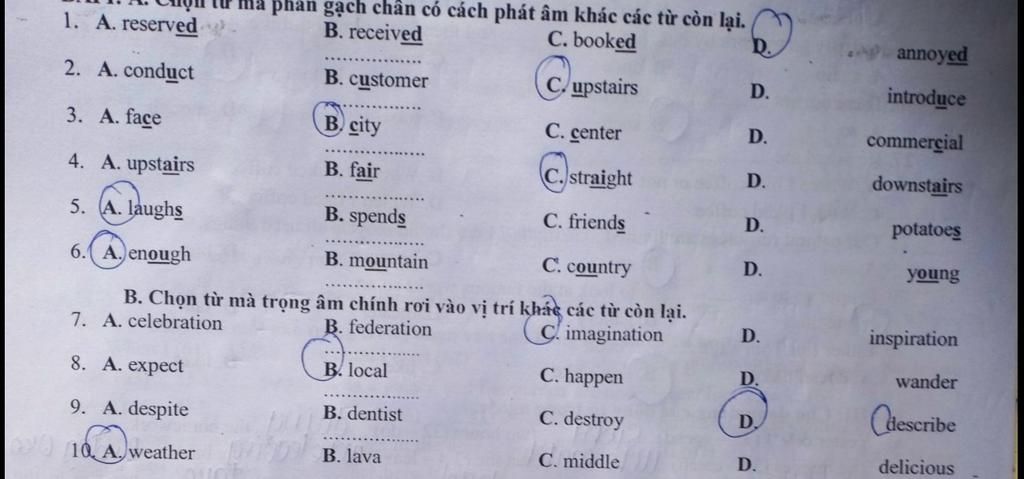 `6.B`( âm /aʊ/ còn lại âm /ʌ/ )