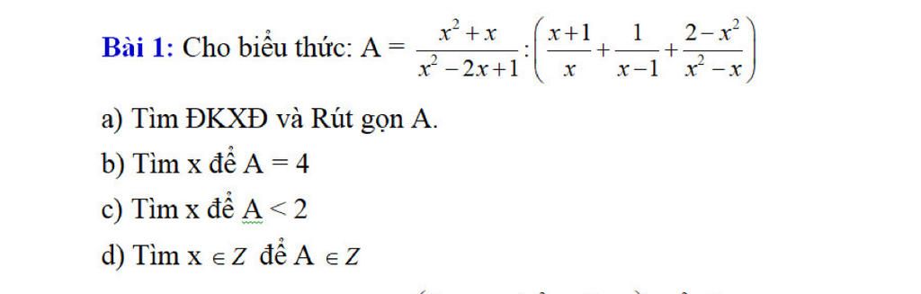 `A\inZZ` khi `(x^2)/(x-1)\inZZ`