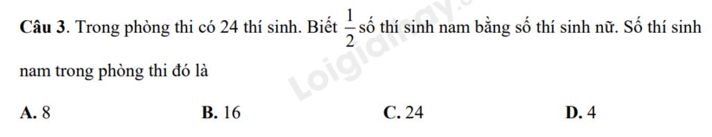 Số thí sinh nam trong phòng thi là : `24-:3xx2=16` `(học` `sinh)`