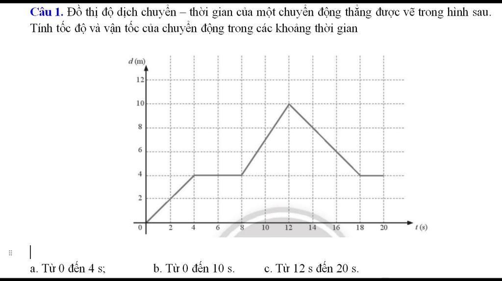 a. `v_1 = overline{v_1} = (d_1 - d_0)/(t_1 -t_0) = (4-0)/(4-0) = 1 (m//s)`
