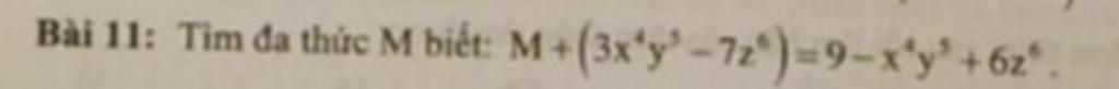`=> M = 9 + (-x^4 y^5 - 3x^4 y^5) + ( 6z^6 + 7z^6)`