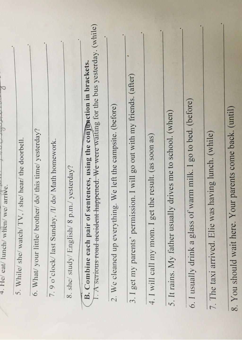 1. A serious road accident happened while we were waiting for the bus yesterday.