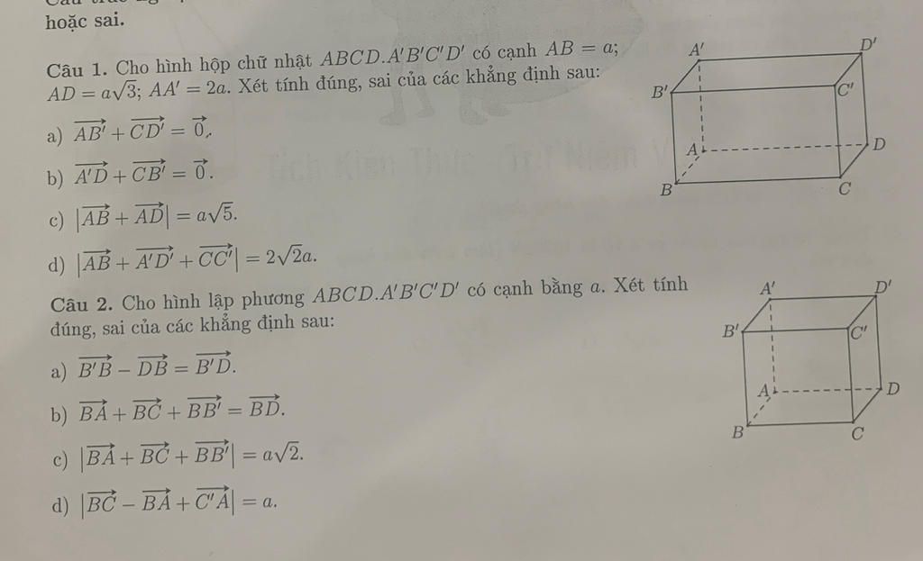 Ta có: `vec(A'D)=vec(B'C)=>vec(A'D)+vec(CB')=vec0`
