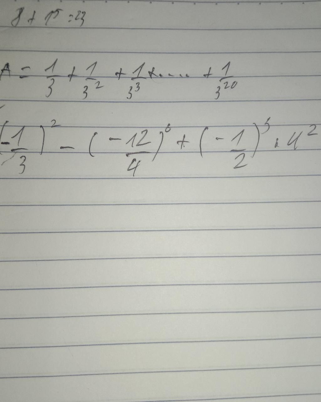 `A=1/3+1/3^3+1/3^3+...+1/3^20`