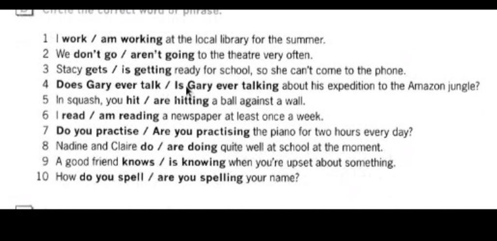 8 Nadine and Claire do / are doing quite well at school at the moment.