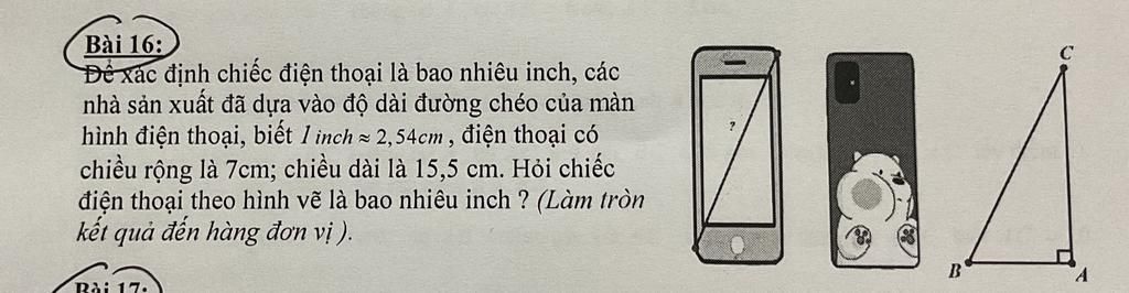 Đường chéo chiếc điện thoại đó là: `17 : 2,54 ~~ 6,7` (inch)