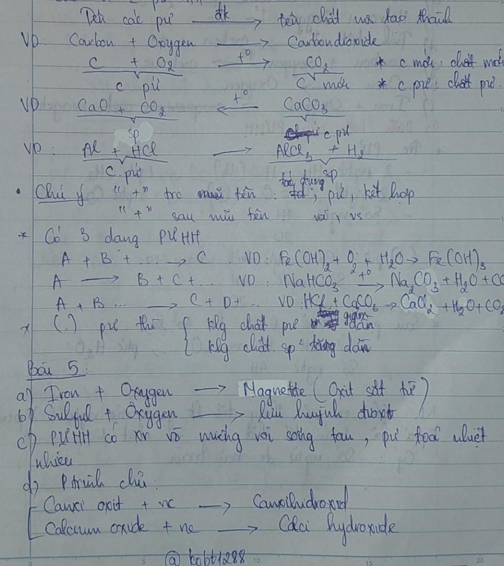 Ví dụ về phương trình hóa học: 3Fe + 2O2 → Fe3O4