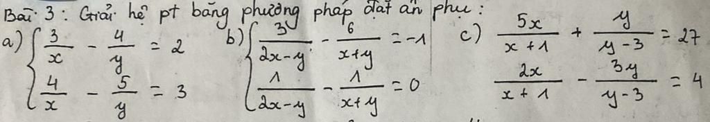 bạn ơi mình ghi là chữa ĐẶT ở mỗi câu đó ạ là đặt ẩn phụ a và b đó còn ẩn chính là x với y đó ạ