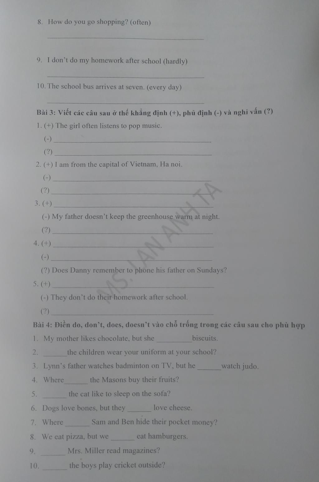 #Câu hỏi bắt đầu bằng Wh-: Wh- + do/does (not) + S + V(nguyên thể)….?