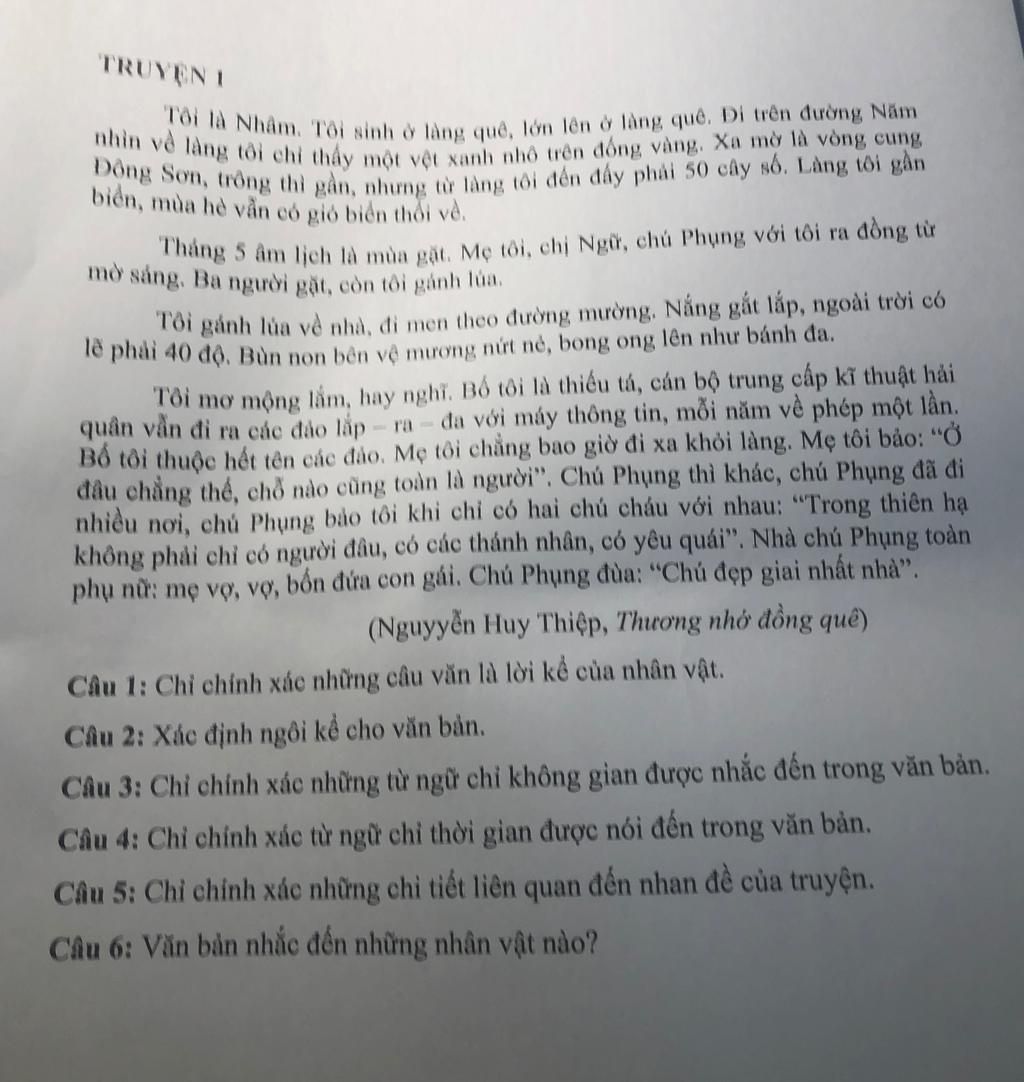 `-` Chính xác những câu văn là lời kể của nhân vật: