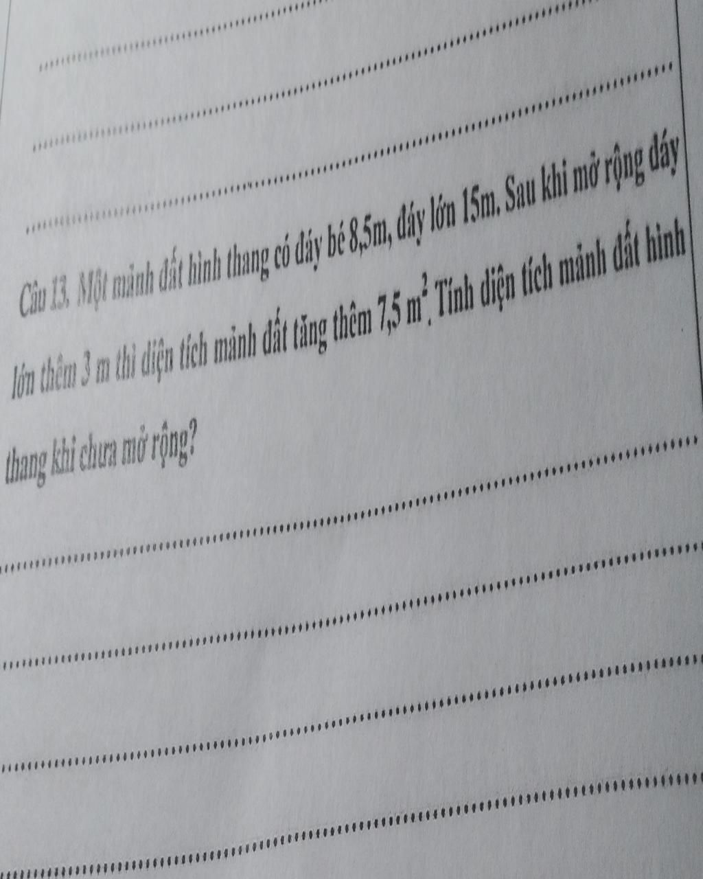 Sau khi mở rộng thêm đáy lớn thêm 3m, diện tích hình thang tăng thêm 7,5m2, ta có: