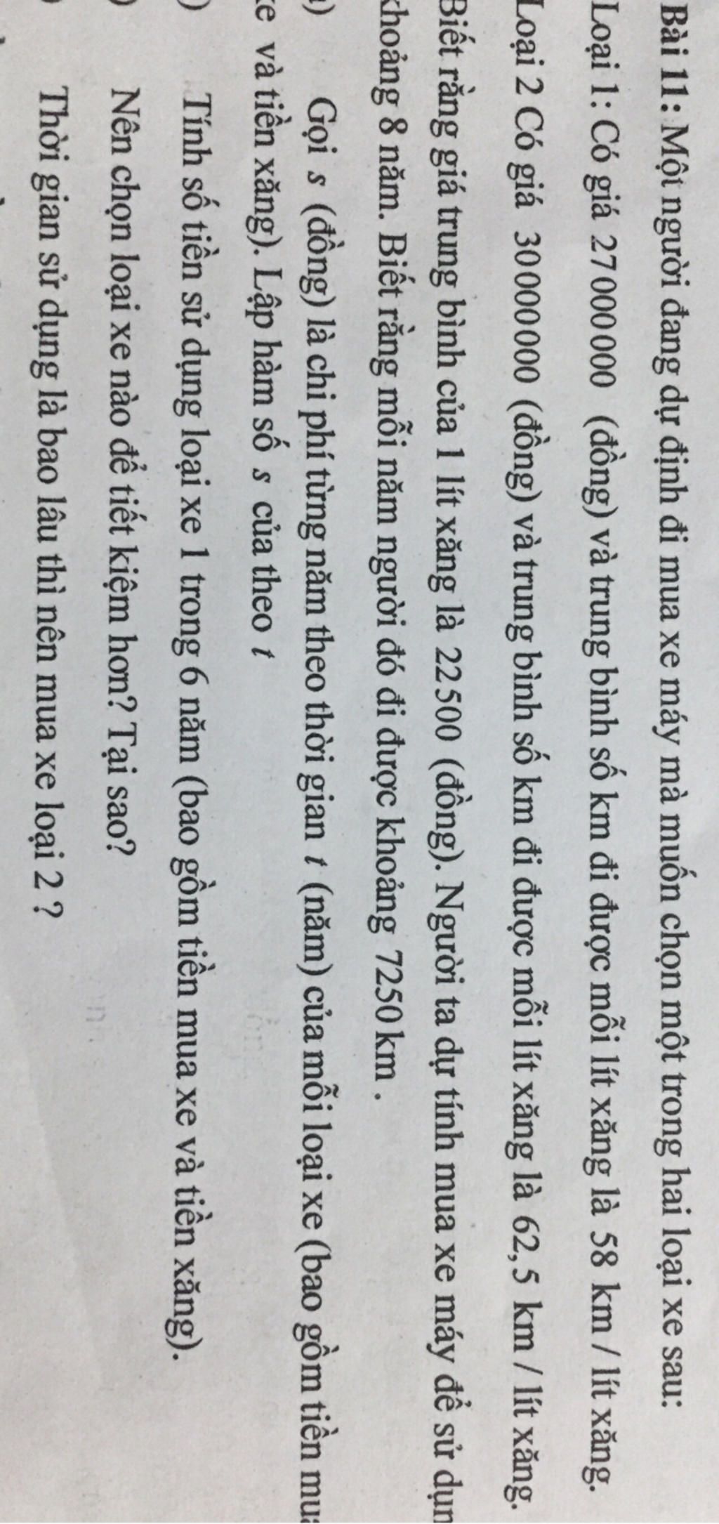 Bài 11: Một người đang dự định đi mua xe máy mà muốn chọn một trong hai loại xe sau:
