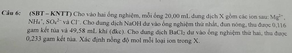 chỗ nồng độ của Mg, NH4, SO4, Cl ( khúc cuối) CM= n/V ( chỗ V là 20ml => 0.02 thọi ạ ) chỗ đấy á bạn,
