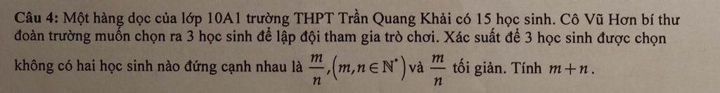 không có hai học sinh nào đứng cạnh nhau là ” (m,neN")và m tối giản. Tính m+n.