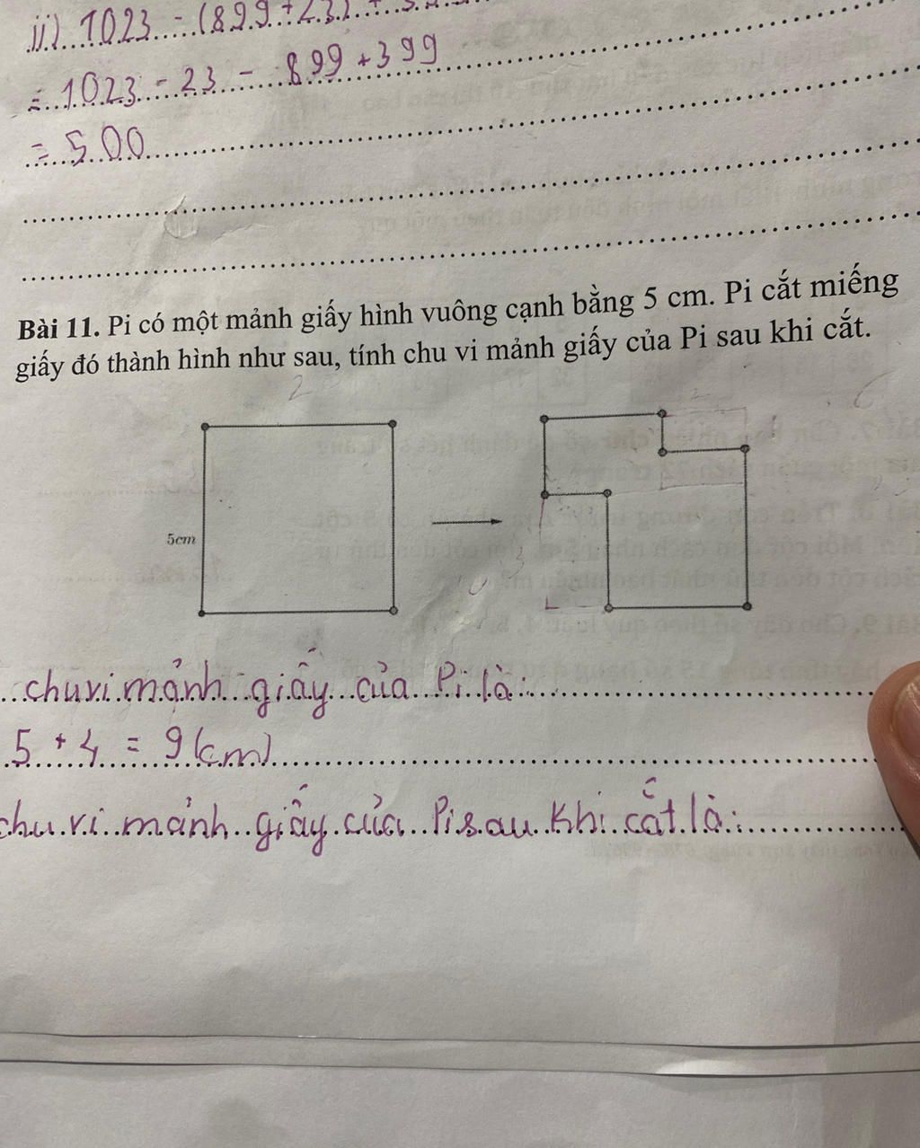 Cách trả lời bài toán pi có một mảnh giấy hình vuông cạnh bằng năm săng ti mét pi cắt miếng giấy đó thành hình như sau tính chu vi mảnh giấy của pi sau khi căt