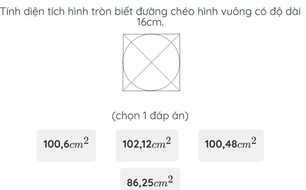 Nếu xem hình vuông đó là hình thoi, diện tích hình vuông đó là:
