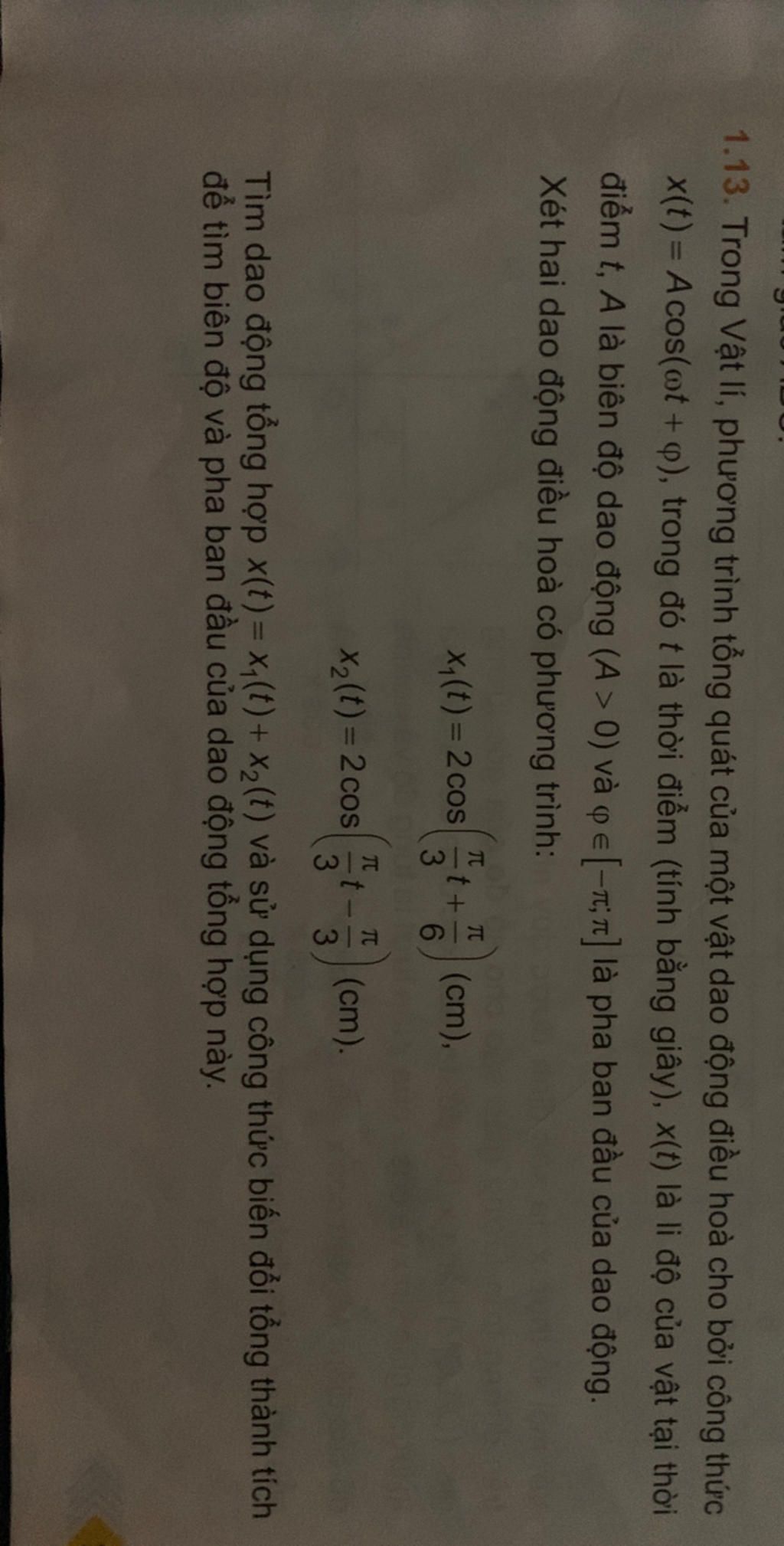 1.13. Trong Vật lí, phương trình tổng quát của một vật dao động điều hoà cho bởi công thức