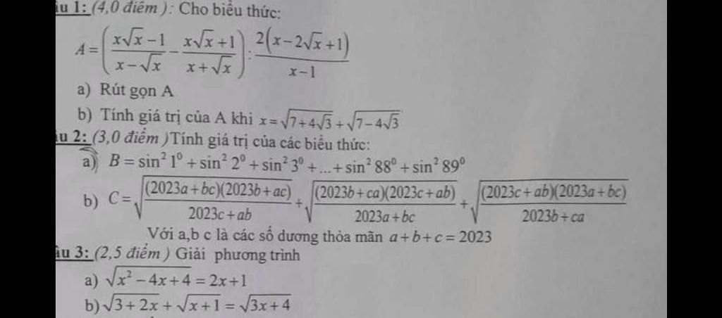 Tu 2: (3,0 điểm )Tính giá trị của các biểu thức: