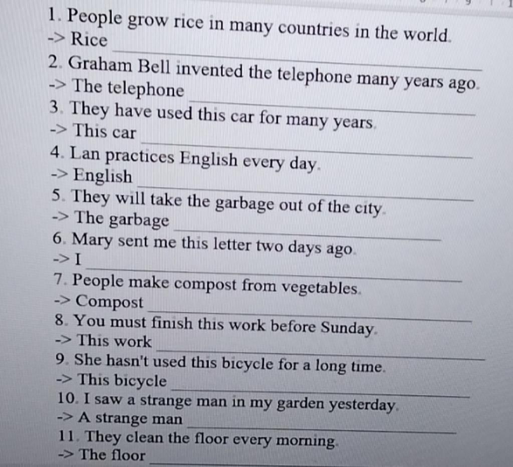 - Các đại từ bất định như someone, somebody, everyone,... không cần đưa vào câu bị động