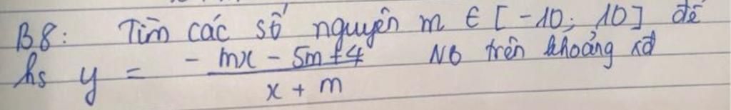 -mx-5m+4/ x+m nghịch biến trên khoảng xác định