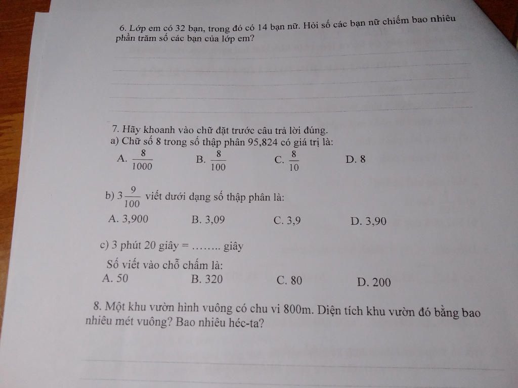 $\text{ 6) Các bạn nữ chiếm số phần trăm là: }$