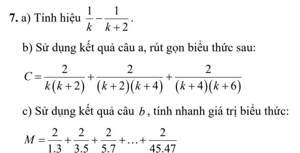 `b; C = 2/(k(k+2))+2/((k+2)(k+4))+2/((k+4)(k+6))`