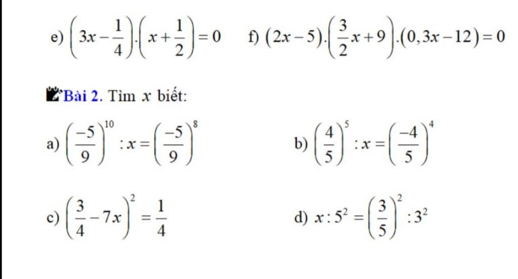 `=>2x-5=0` hoặc `3/2x+9=0` hoặc `0,3x-12=0`