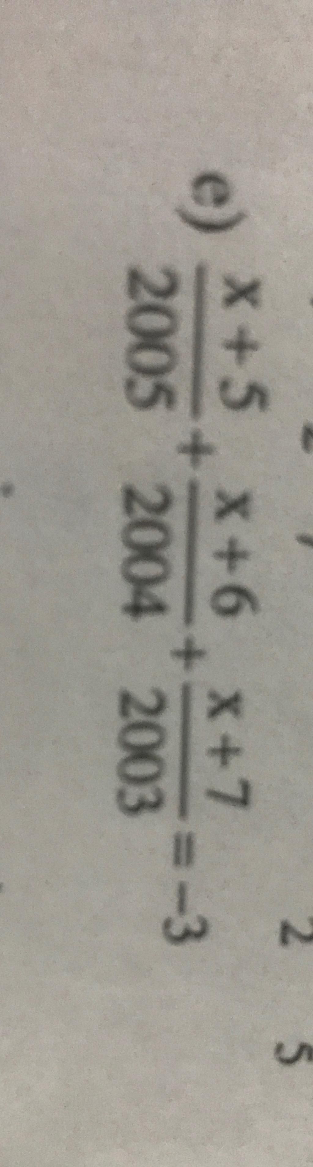 ( `(x+5)/2005` + 1 ) + ( `(x+6)/2004` + 1 ) + ( `(x+7)/2003` + 1 ) = -3 + 1 + 1 + 1