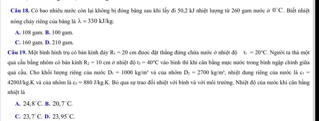 Khối lượng nước còn lại bị đóng băng là `m_2 (g)`