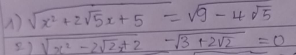 ` 1) \sqrt(x^2+2x\sqrt5 +5) = \sqrt(9-4\sqrt5)`
