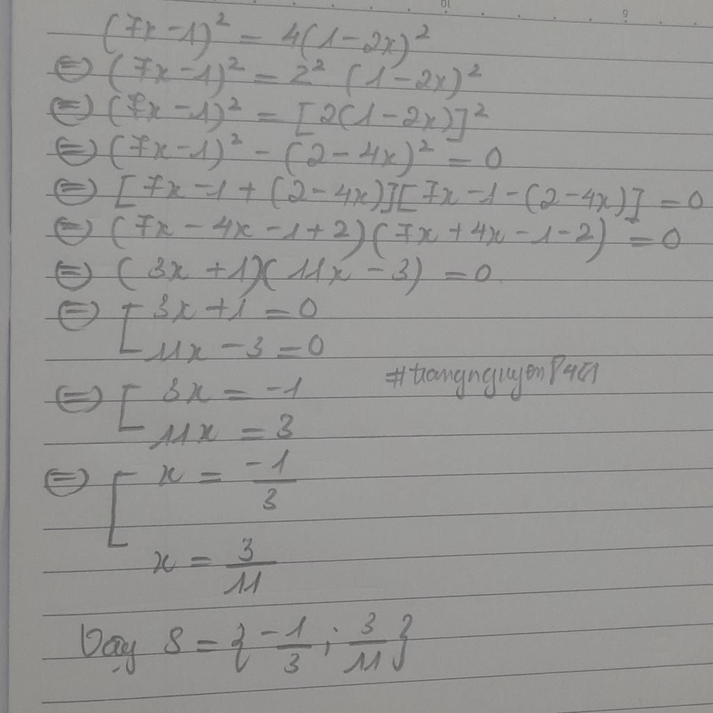 `<=>(7x-1)^2 -4(1-2x)^2 =0`