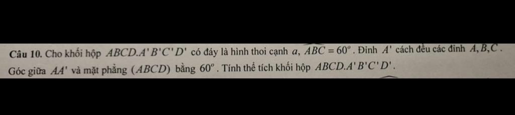 `@V_(ABCD.A'B'C'D')=A'O.S_(ABCD)=a. (a.a.sin60^o)=(2a^3sqrt3)/4`