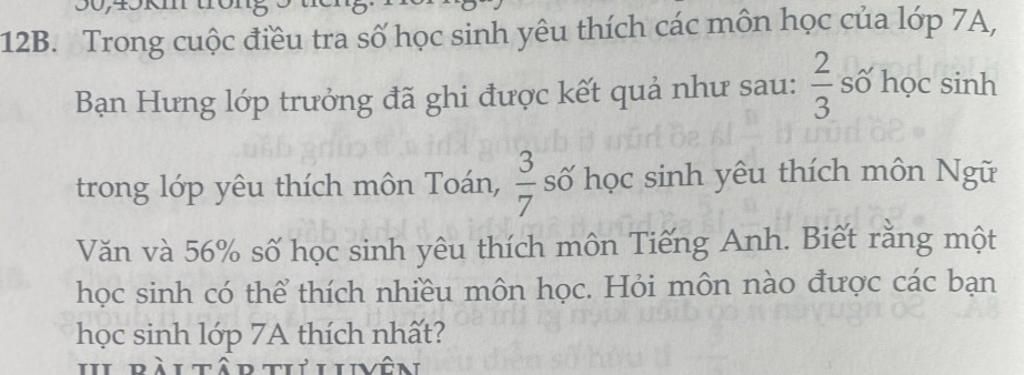 Do `225/525<294/525<350/225` nên môn Toán được các bạn yêu thích nhiều nhất.